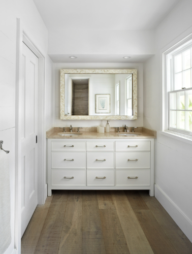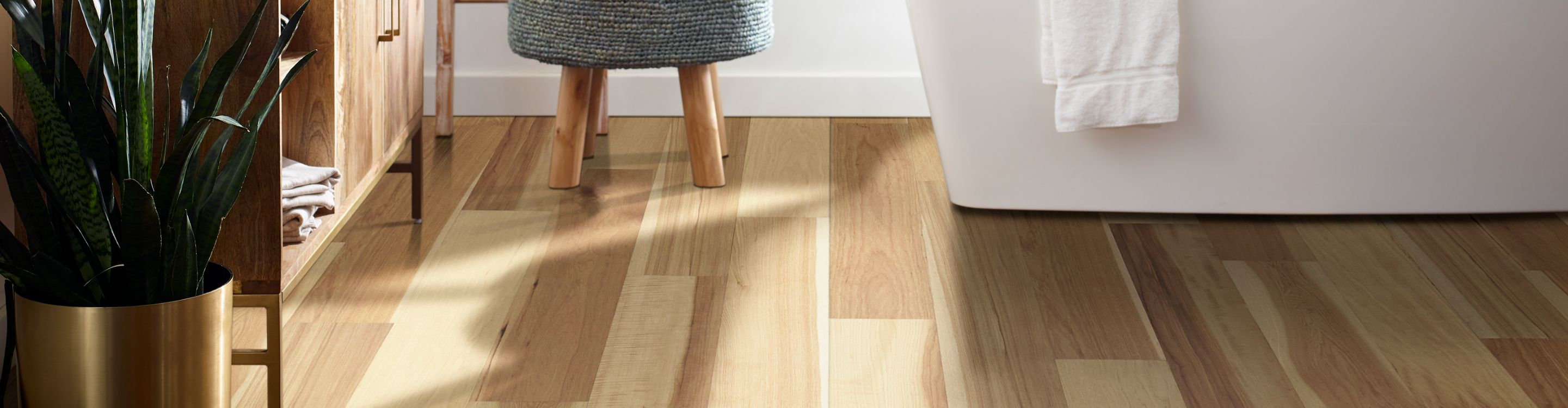 When selecting a wood floor for your bathroom, look for options with a hyper-dense core to help prevent water damage. Choosing a wood flooring option with a 50-Year Residential Warranty can also provide added peace of mind, ensuring your bathroom floor remains protected and beautiful for years to come.